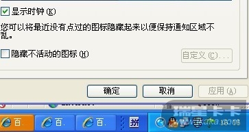 右键点击任务栏,选择“属性”,在出现的界面把“隐藏不活动图标”去掉,点击“自定义”,再在新出现的新界面找到那些被隐藏的图标,如图选择“总是显示”,保存
