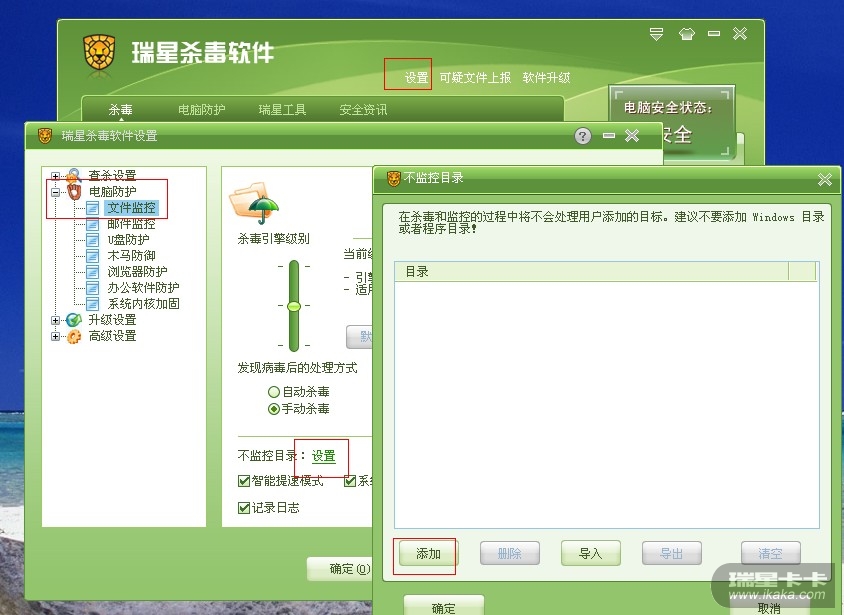 1.设置--查杀设置--电脑防护--木马防御--白名单