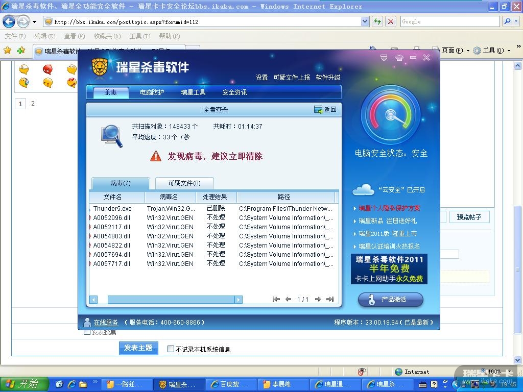 如题,但是瑞星查出来之后,处理方式居然是“不处理”,气我也啊