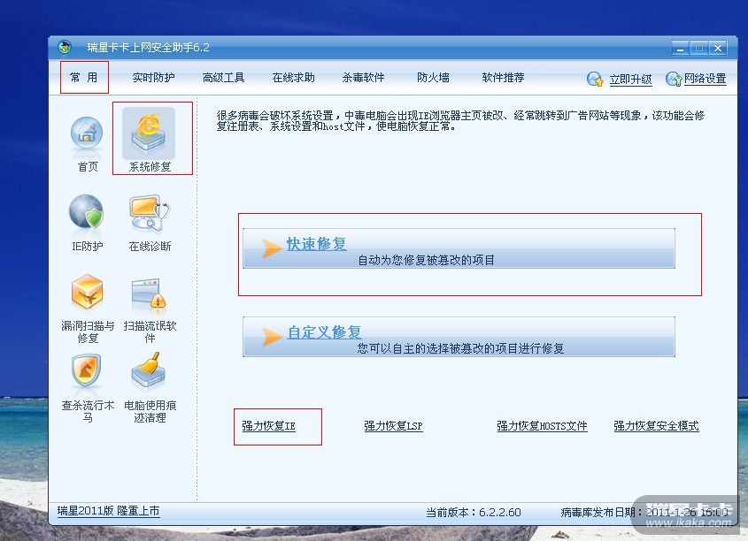 建议LZ先 到使用瑞星卡卡助手 到安全模式下修复下IE..