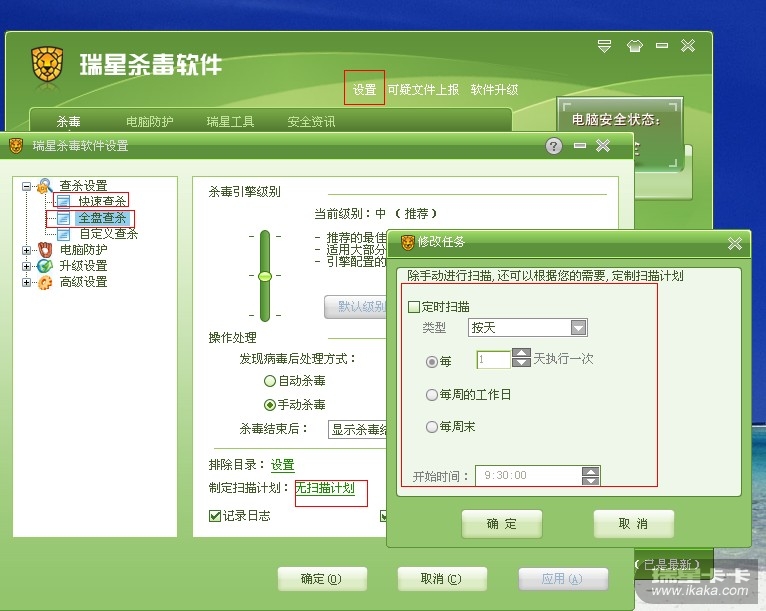 可以的,打开瑞星-设置-查杀设置-快速查杀(全盘)-制定扫描计划