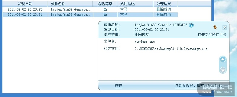 还有可能是trojan.win32.generic伪装成wcmdmgr.exe