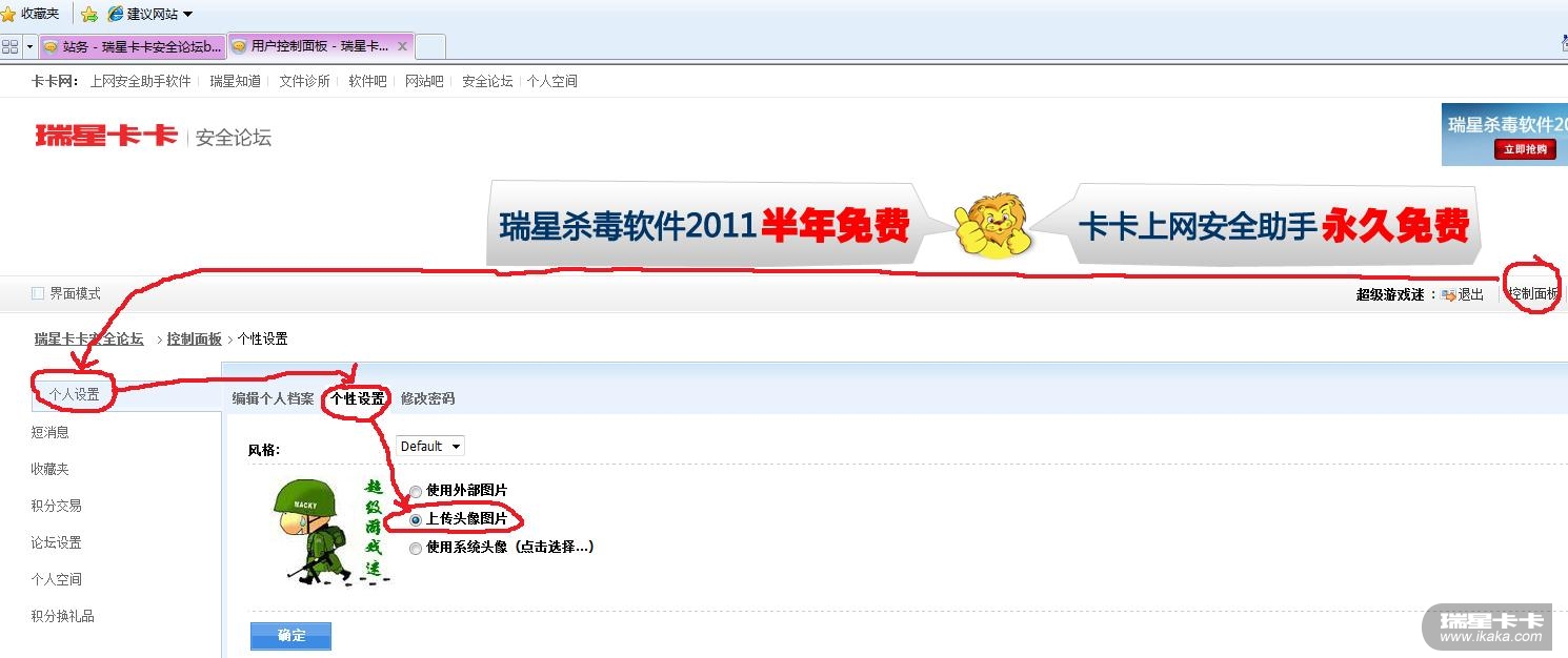 在控制面板中的 个人设置 -> 个性设置,可以使用论坛自带的头像或者自定义的头像。初生襁褓狮及某些特殊用户组,不允许使用头像。