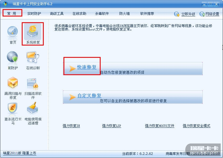 楼主可以先用瑞星卡卡上网安全助手扫一下流氓软件,然后试一下瑞星卡卡上网安全助手的修复功能