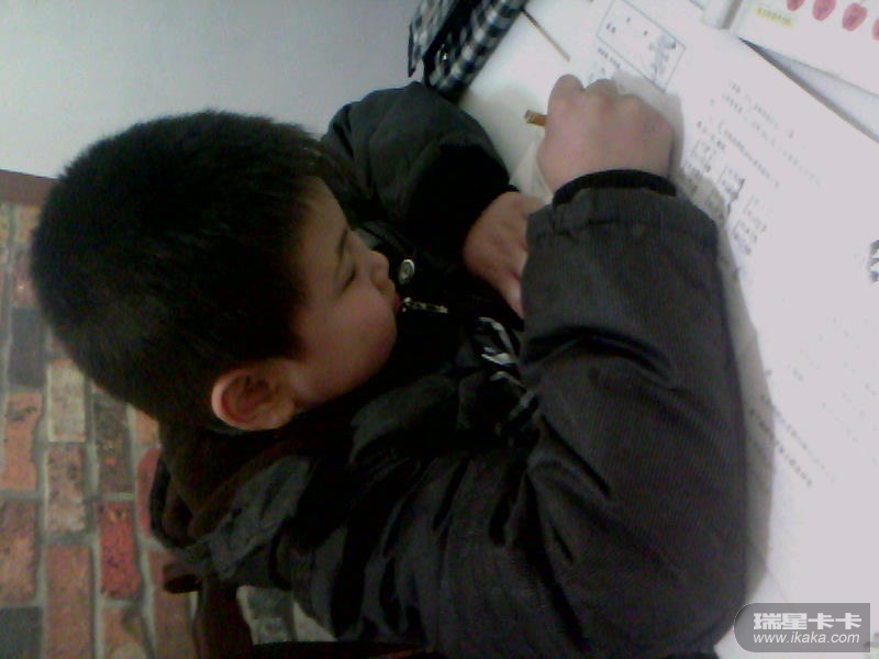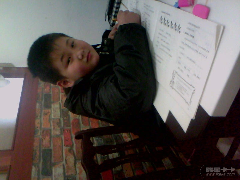 这个是棋棋10岁的弟弟 在做作业呢 很用功吧 呵呵