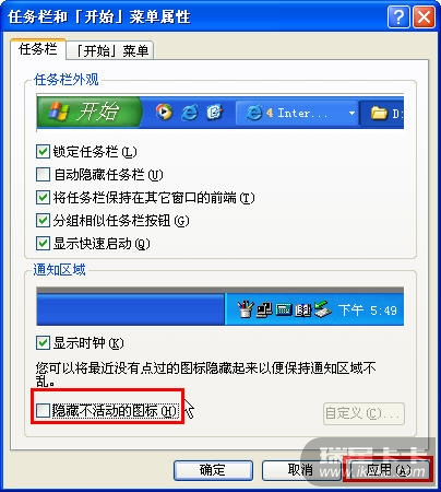 然后把“隐藏捕获到的图标”的选项去掉,再点“应用”