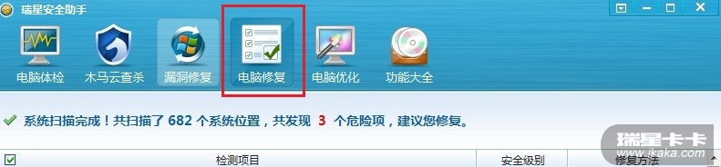 并且建议你使用卡卡安全助手修复IE。