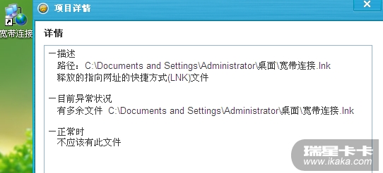 有多余文件 C:\Documents and Settings\Administrator\桌面\宽带连接.lnk