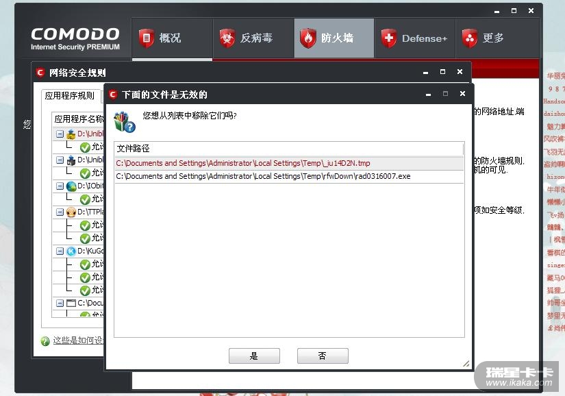 在瑞星防火墙/程序联网规则列表中右击可以清理无效规则,这个功能是有的。