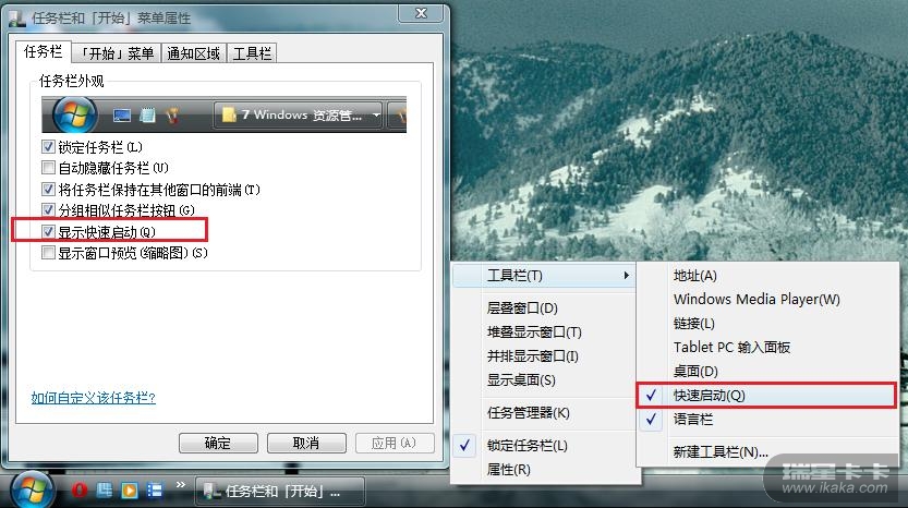 把快速启动和工具栏弄出来以后重启就又没了``又要重新弄