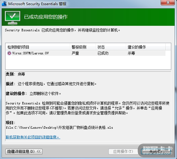 请帮帮忙看下,我公司的所有excel档打开时都提示x97m/escop.a3有这个病毒名,我到瑞星病毒库里也没找到,到网上搜,贴子很少,所以就想到这来求救了...
