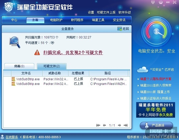 请楼主跟帖上传这2个可疑文件,我们会尽快重新分析,感谢您的支持。