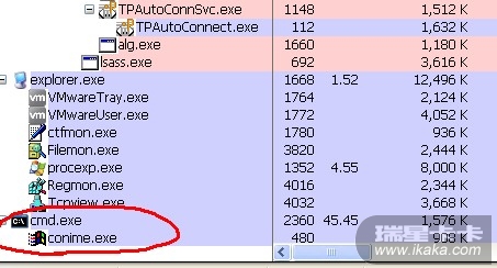 运行一段时间后会启动 cmd。exe进程 如图(额 结束1.exe太快了 没来得及截图)