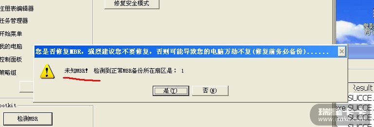 由于已知是鬼影 其是通过修改mbr来实现自身加载的 注册表应该没有什么更改 验证如图