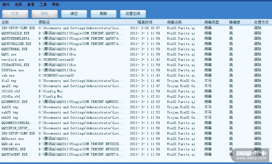 最近一个月无论是,瑞星2011,还是瑞星全功能2011软件都是误杀率非常高。文件实时监控或是全盘查杀,都是吧qq聊天,qq游戏,qq影音 等。。。。。系列软件给查杀了。导致该软件无法启动。如果是装有双系统的电脑,瑞星会把另一个xp系统杀掉导致无法启动,或蓝屏。:kaka10: :kaka10: 给用户带来了不便,希望能尽快改进。。。。。。。