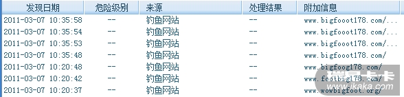www.bigfooot178.com这个网站出现了截图1的那种提示外,其他的不是只有右下角提示(说实话右下角提示很容易被忽视,还是直接图1那样网页覆盖来的实在),就是连右下角的提示都没有,我截图的只是部分网站,还有一部分没有截上,因为中间还有其他日志。