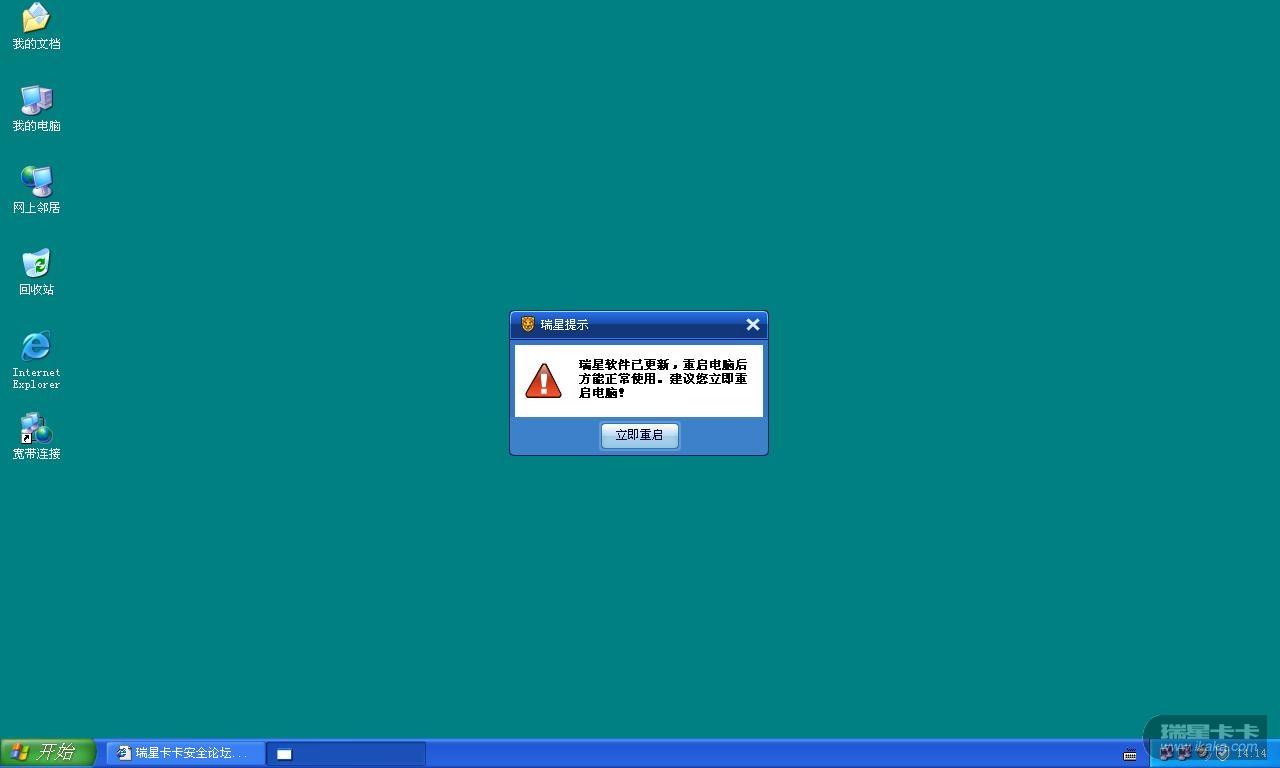 于是就手动起动瑞星也是弹出软件已更新重启才能使用的窗口。