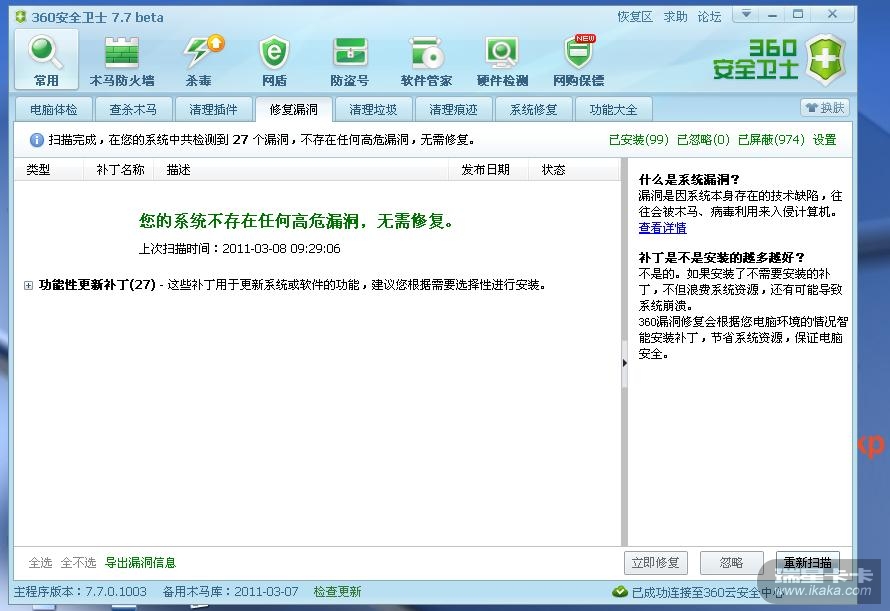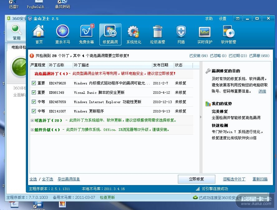 关于漏洞修复问题,建议您以windows update扫描结果为准。
