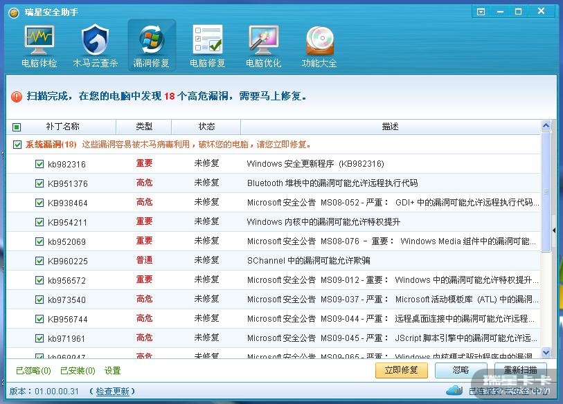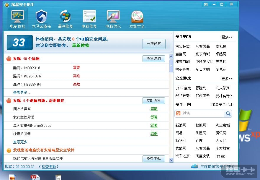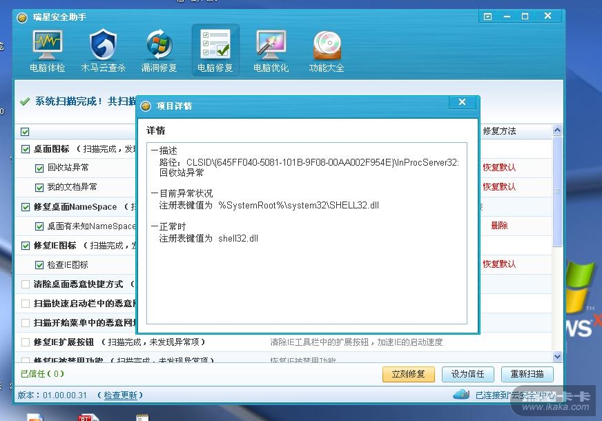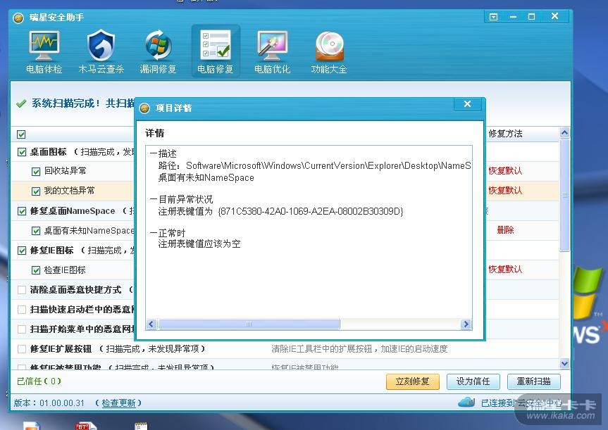 电脑修复问题,已提交相关部门。感谢您参加瑞星安全助手测试!