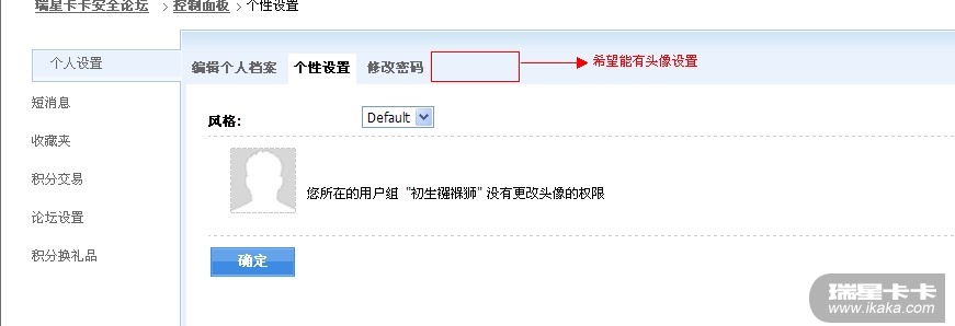 1.从您截图可见,头像旁边提示了您的组别是无权更改头像的。200积分后可自行更改;