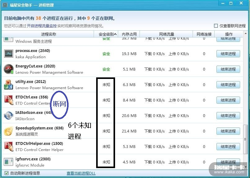 一个问题 :就是联网下 ,打开进程管理 发现一大片的 未知程序项 ,估计过上个 3-4个小时 发现全部安全了,一但 断网 也会出现大片程序未知
