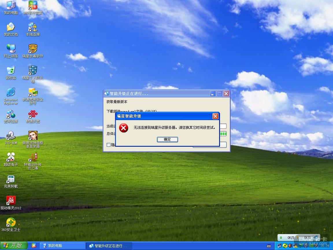 我新从瑞星官网下载的瑞星杀毒软件2011版,但是却无法升级。(以下是显示的截屏)