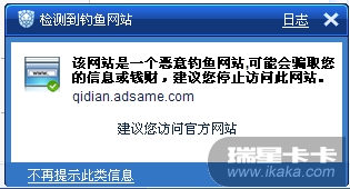 http://qidian.adsame.com/我这里测试打不开页面,是空白页。请您提供瑞星报钓鱼的网址