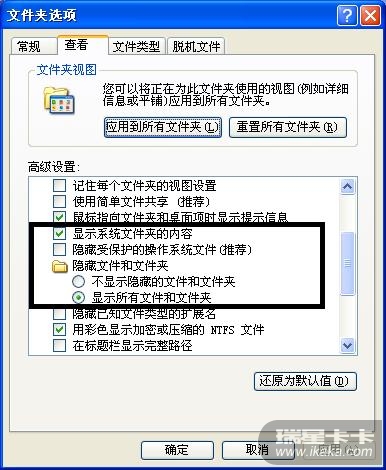双击“我的电脑”,然后,工具--文件夹选项--查看,在出现对话框中完成如下设置: