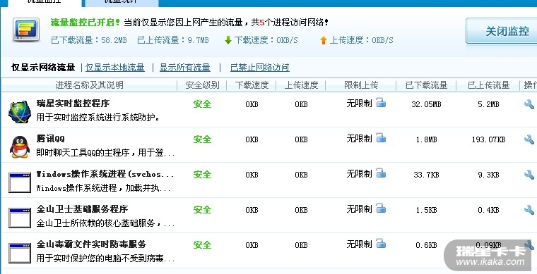 占用CPU50%的是哪个进程。关于流量显示是因为瑞星要监控所有联网的程序,他显示的流量是联网程序的总流量。