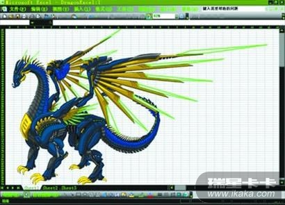 近来一组牛人用Excel画出西方龙的图片在网上热传。这组图片中,制作者先是勾勒出西方龙的大概形状,再在此基础上进行细节的润色。成品的西方龙栩栩如生,强健的肌肉、密集的鳞片、霸气的头部,几乎每个细节都照顾到了。值得一提的是,这一作品几乎全由线段构成,虽然通过绘图工具画线段并非难事,可图中密密麻麻的线段连接点还是令人不禁感叹制作者不仅时间充裕,而且极富有耐心。