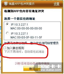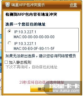 可是依然不停地弹出窗口让我选择,几乎是一秒钟一次,太烦人了,难道arp静态规则没有用么?