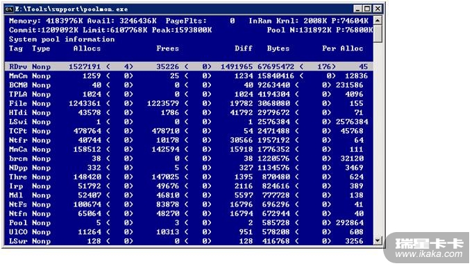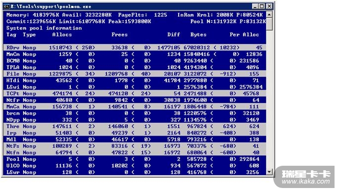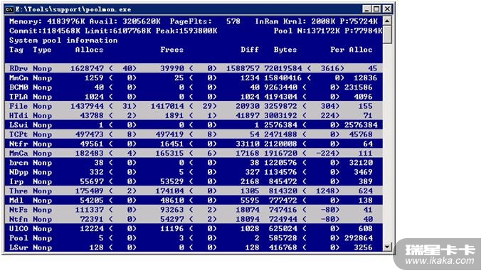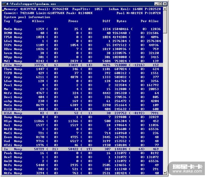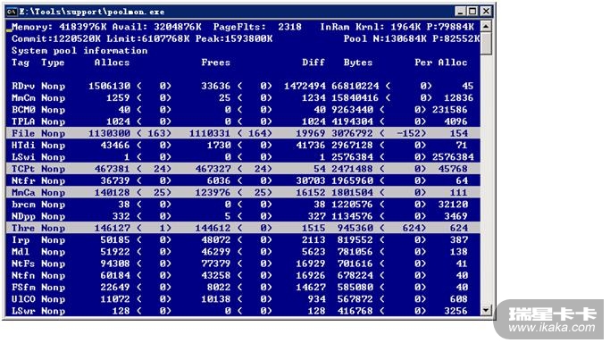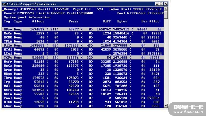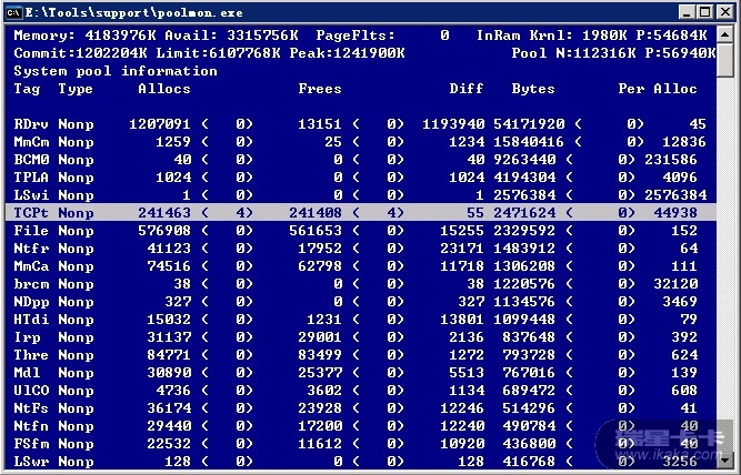 这段时间服务器非分页内存一直往上升,用poolmon查了下隔段时间截图如下