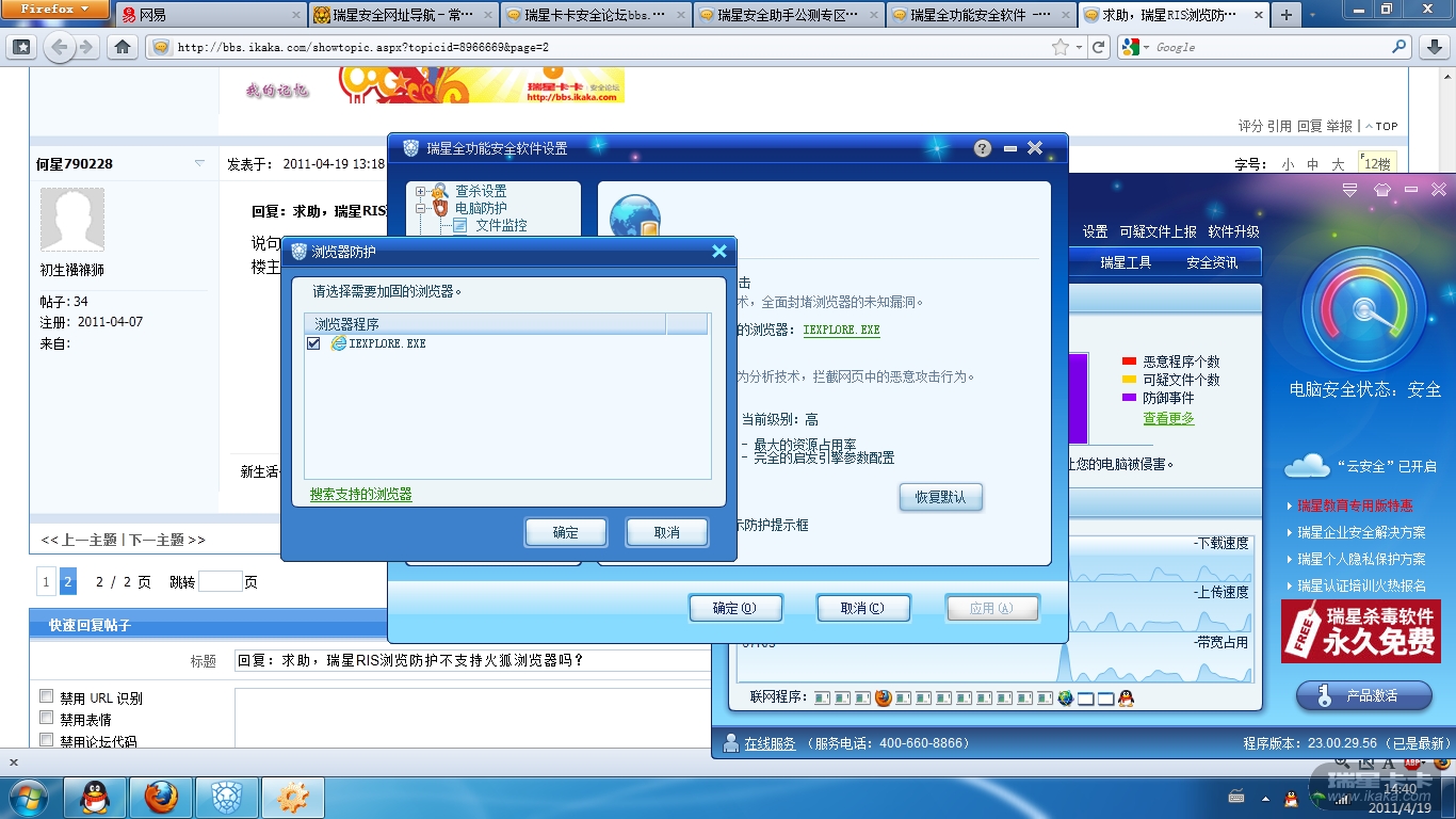 求助,瑞星RIS浏览防护不支持火狐浏览器吗?