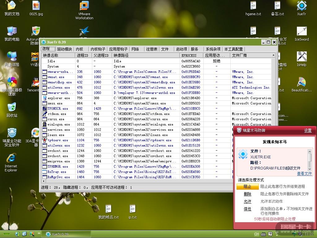 请lz提供xuetr说是木马的截图,另瑞星杀毒软件版本是多少?请提供蠕虫病毒样本,感谢支持。