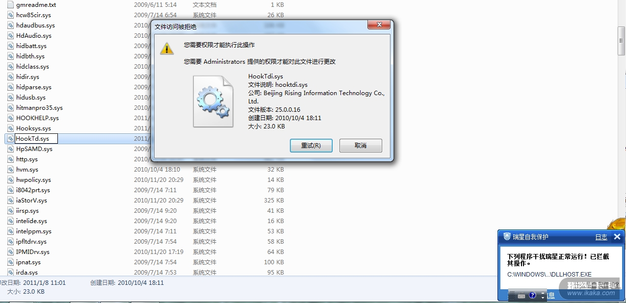 我的系统是vista home Premuim SP2,瑞星病毒,防火墙,卡卡,