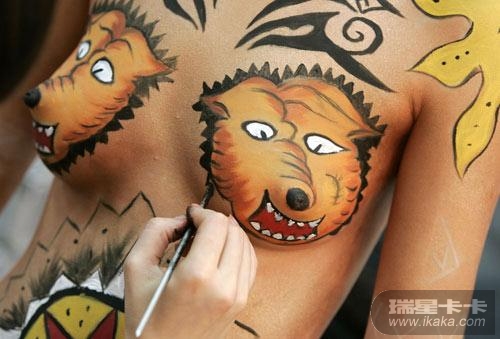 七八成人体彩绘模特是学生