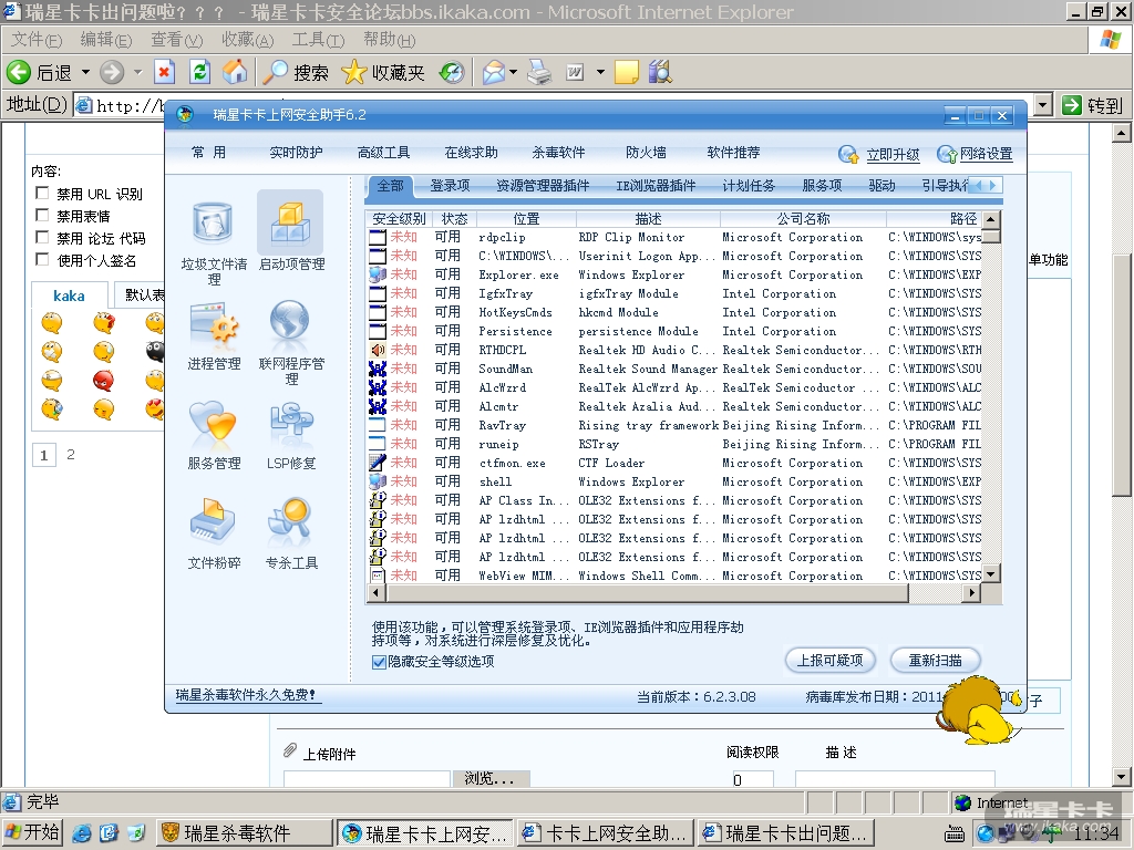 + bsmain Rising Antivirus 2011 Beijing Rising Information Technology Co., Ltd. C:\WINDOWS\system32\BSMAIN.EXE