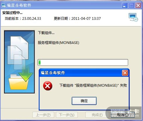瑞星软件的安装包,会自动连接网络下载正确的文件,替换出现问题的文件。