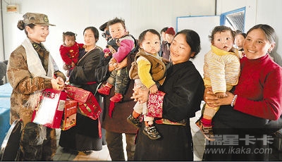 4月11日,济南军区野战方舱医院抽调医疗分队,奔赴玉树灾区巡诊回访去年在地震中被救治过的伤病员恢复情况,并进行春季常见病防治宣传和心理抚慰。