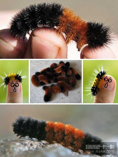 毛毛虫生长在美国的东北部,以及加拿大东部的一些地区。这种小虫子两头是黑色,中间呈红褐色。据说,如果毛毛虫背上的那段棕色带非常宽,那意味着将迎来一个暖冬,但如果毛毛虫背部的黑色覆盖了大部分区域,那预示着接下来将会是一个严冬。