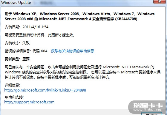 反复无数次windows关机前提示有更新安装,每次都安装失败,即上述KB2446708。