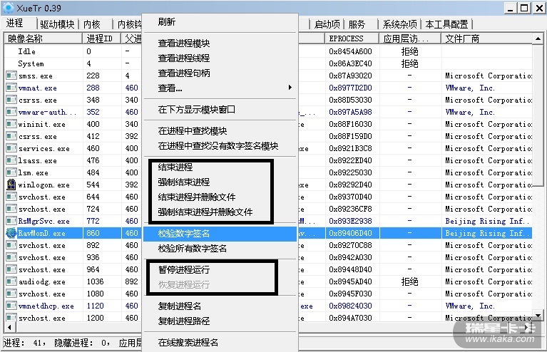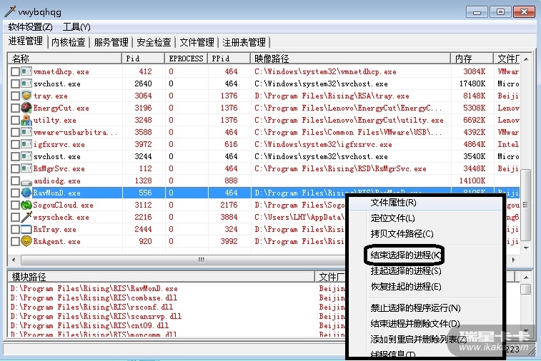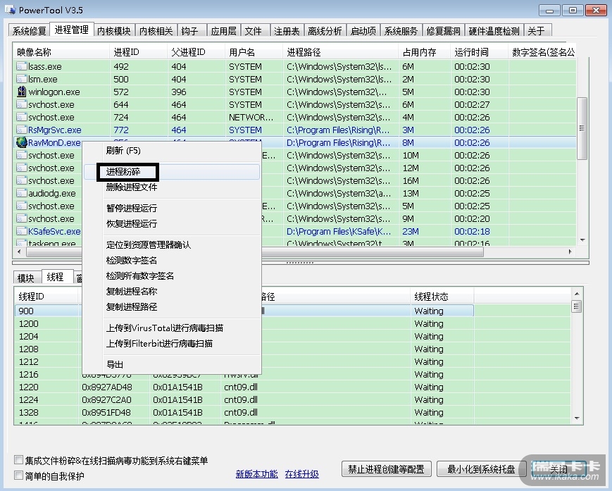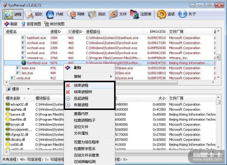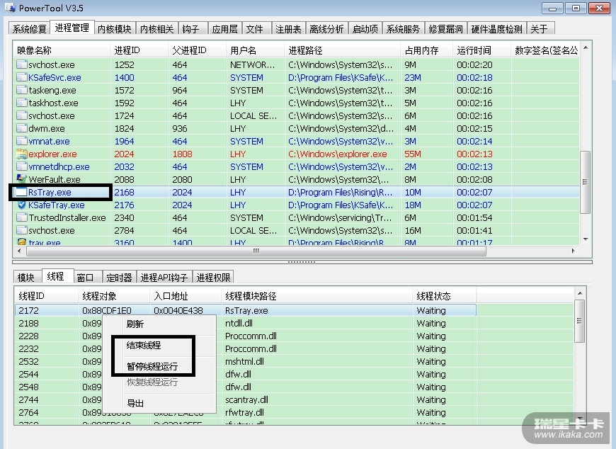 此工具 既能结束瑞星的进程 ,又能挂起 瑞星的进程