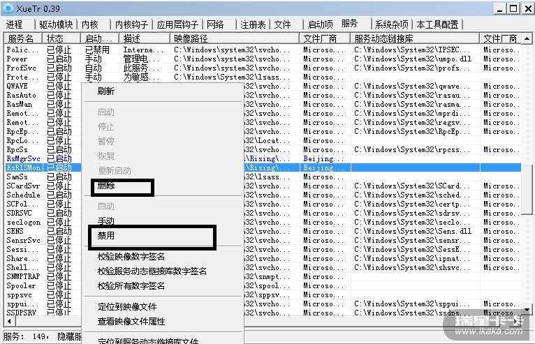 能操作瑞星服务,能删除 也能 禁止 瑞星相关服务