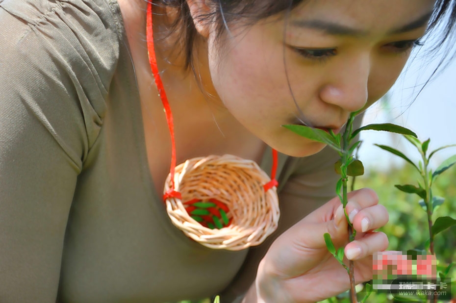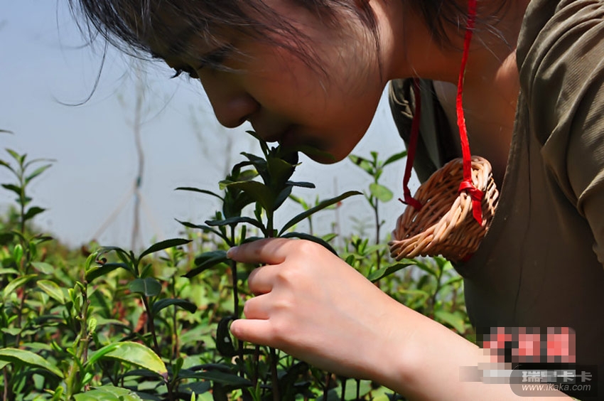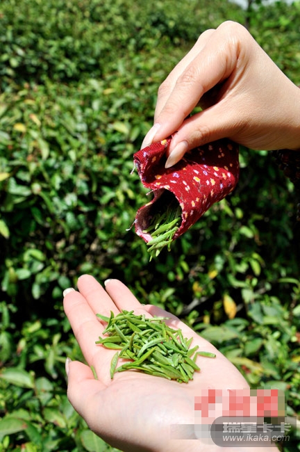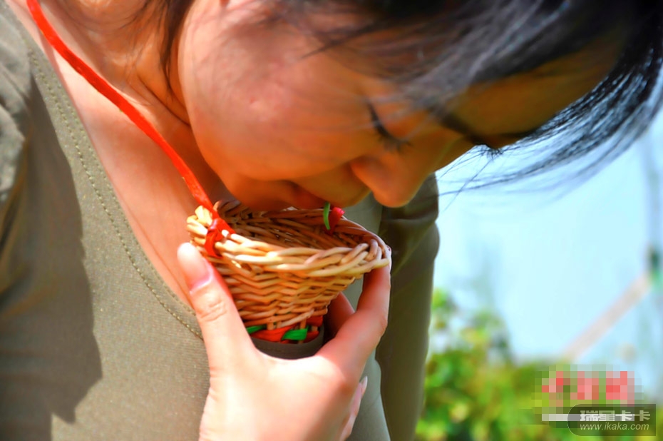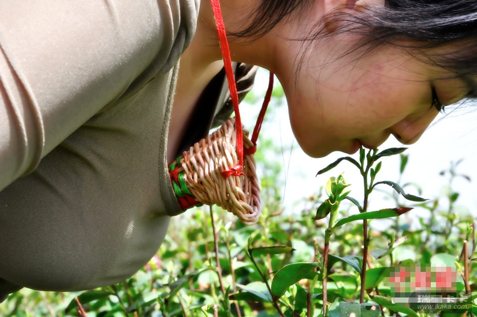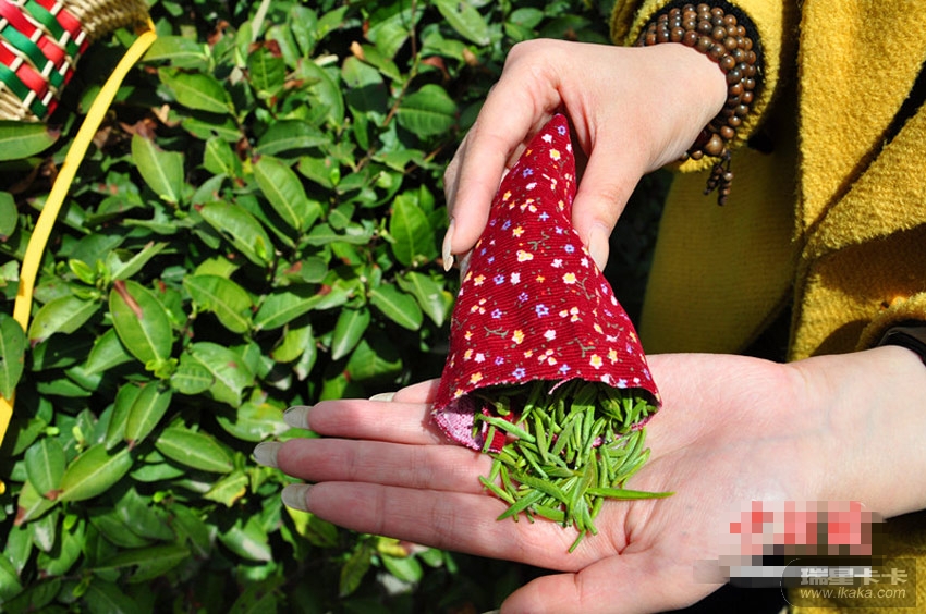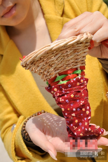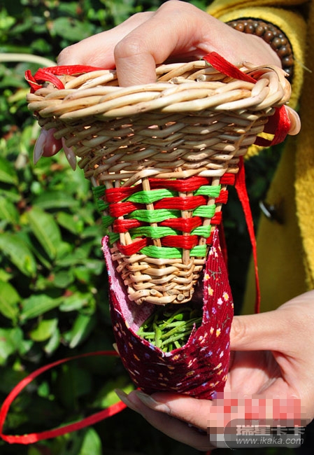 4月19日,河南固始西九华山风景区展示采茶工口唇茶专用收集工具“茶柳情”。该工具是用信阳著名的柳编精制而成,在使用时将其放置胸间,接收采茶女用咬下的嫩茶叶。