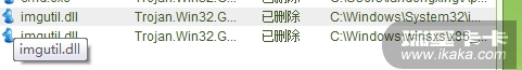 今天我也发现了,imgutil.dll文件被瑞星认定为木马,使用快速查杀有2个,但是其中一个删除失败,监控采取不处理的方法。