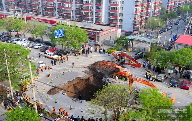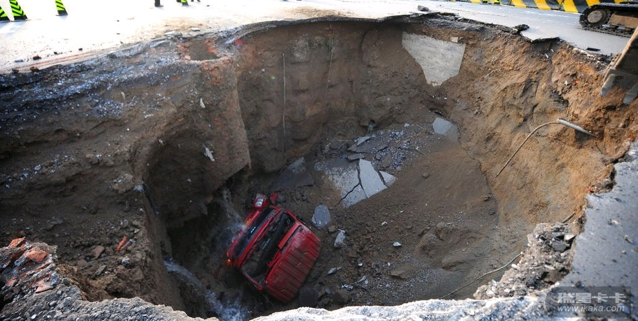昨天(26日)凌晨,一辆载满沙土的斯太尔卡车在丰台区石榴庄路行驶过程中,路面突然塌陷,出现深约15米的坑洞。卡车陷入深坑,所幸车内两人被热心路人及时救出。根据现场实际情况,救援方决定将事故车留在坑内,就地填埋。