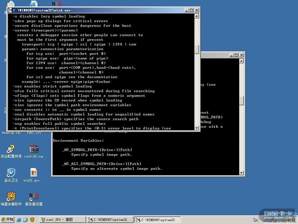 下面两个黑框 是安装了瑞星后打开后就是两个这样的dos窗口。然后瑞星就打不开