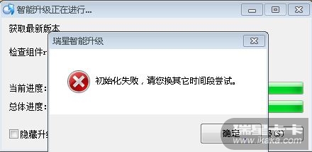 结果:瑞星 无法升级提示 初始化失败 ,修复失败 ----点击修复 没有任何反应