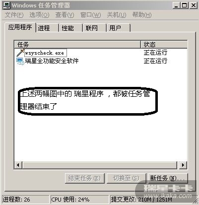 操作:用任务管理器结束瑞星升级程序和 安装程序