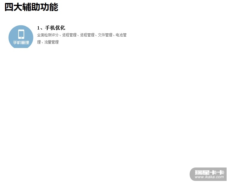 四大辅助功能”的介绍中,第1项手机优化中,出现了两次“进程管理”,看到没有???